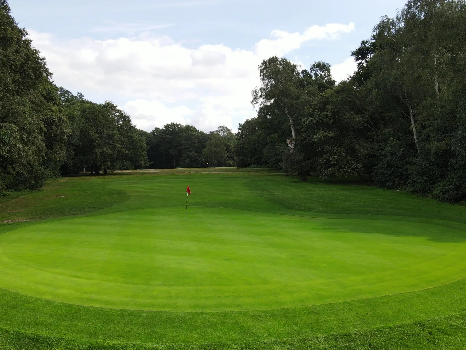 Named after one of the many old gravel excavations on the common. A short par 4, needing an elevated tee shot to overcome a barrier of birch trees in front of the fairway. This achieved, only a short pitch remains to a testing green, sloping left to right.